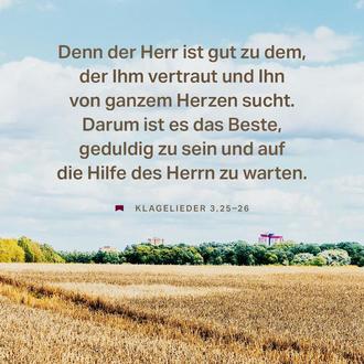 Denn der Herr ist gut zu dem, der ihm vertraut und ihn von ganzem Herzen sucht. Darum ist es das Beste, geduldig zu sein und auf die Hilfe des Herrn zu warten.