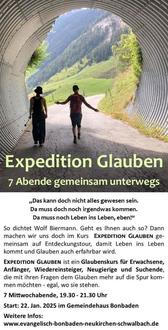 | 19.30 Uhr | „Expedition Glauben“ in Bonbaden, ev. Gemeindehaus |