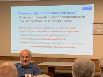Es folgte ein Vortrag zu den Themen: Schockanrufe, Enkeltricks, Betrug und falsche Polizisten, anschaulich konnten Herr Griese und Frau Schuster aus dem Alltag des WEISSEN RINGs berichten und gute Tipps geben.