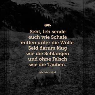 Seht, ich sende euch wie Schafe mitten unter die Wölfe. Seid darum klug wie die Schlangen und ohne Falsch wie die Tauben.