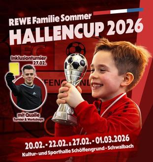 Vom 20.-22.02. & 27.02.-01.03.2026 findet der 10. REWE-Sommer-Hallencup in der Kultur- und Sporthalle Schöffengrund statt!