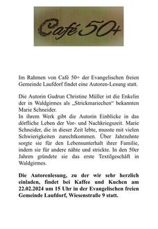 | 15:00 Uhr | Cafe 50+ |