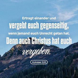 Ertragt einander und vergebt euch gegenseitig, wenn jemand euch Unrecht getan hat. Denn auch Christus hat euch vergeben.