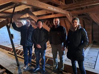 So übereinstimmend die Mitglieder des Münsterer Kirchenvorstandes Norbert Friedrich und Otto Hofmann beim Ortstermin mit dem Fledermaus-Sachverständigen Benjamin Zabel und Architektin Miriam Trabusch (von links nach rechts). Foto: Finger