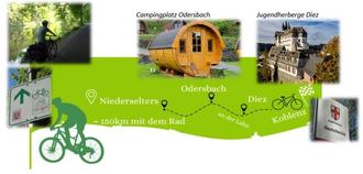 Die Radtour ist ca. 145 km lang und führt größtenteils flussabwärts entlang an Weil, Lahn und Rhein – also konditionell gut machbar.