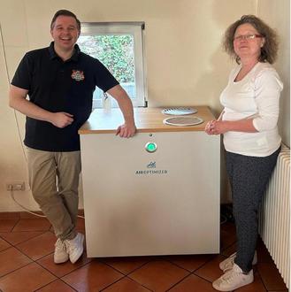 Mit der Bereitstellung der Anlage unterstreichen die Theaterfreunde ihr Engagement für das Gemeindeleben in Eisenbach. „Es ist uns wichtig, dass Vereine und Institutionen im Ort zusammenhalten und sich gegenseitig unterstützen“, sind sich Küsterin Christine Gattinger und der 1. Vorsitzende des Club der Theaterfreunde e. V. Michael Ruckes einig. Die Kirchengemeinde zeigte sich dankbar über die Unterstützung und freut sich, die Luftfilteranlage künftig bei Gottesdiensten im Pfarrheim einsetzen zu können.