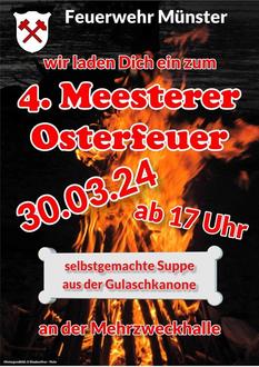 Wir schätzen uns glücklich, das Osterfeuer der Freiwilligen Feuerwehr Münster zum vierten Male veranstalten zu dürfen und freuen uns bereits jetzt auf Euren Besuch.