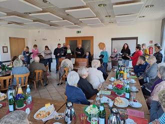 Dort gab es nach der Eröffnung durch den Vorsitzenden des Kirchenvorstandes, Otto Hofmann, ein buntes Programm. Musikalisch rahmte Gemeindepfarrer Ulrich Finger seine biblische Besinnung zu Beginn; ein treffliches Gebet der Theresa von Avila las Gertrud Weeber. Dann folgte eine gut bestückte Kaffeetafel.