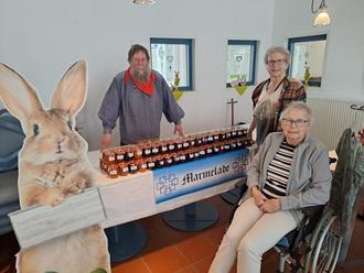 Während die meisten Ostermärkte zum Inhalt haben, möglichst trendige Deko-Artikel und jahreszeitliche Geschenke anzubieten und zu verkaufen, sind die Ostermärkte in und an den Altenpflegeheimen der Region eher ein "kommunikatives Angebot" - bedeutet: Man trifft sich im Ambiente eines kleines Marktes mit Bewohnerinnen und Bewohnern sowie deren Besuchenden und Mitarbeitenden der Einrichtung und hat eine gute Zeit miteinander. So geschehen auch bei den Ostermärkten im "Carpe Diem" in Niederselters sowie im Alten- und Pflegeheim "Weilburger Stift" in Weilburg. An beiden Orten traf "Marmeladenpfarrer" Ulrich Finger Freunde und ehemalige Mitarbeitende des Marmeladenpfarramts, die jetzt in diesen Einrichtung ein neues Zuhause gefunden haben.