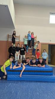 Zum Abschluss konnten alle TeilnehmerInnen ihren Mut unter Beweis stellen: „Wer war wohl mutig genug und traut sich mit verbunden Augen rückwärts aus einer gewissen Höhe auf eine Matte fallen zu lassen.“ – Es war nicht anders zu erwarten: Viele Mutige waren heute nach Haintchen gekommen und meisterten diese aufregende Aufgabe.