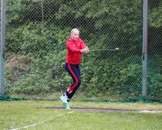 In ihrem allerersten Hammerwurfwettkampf erzielte Amelie Rumpf (W12) auf Anhieb erfreuliche 23,01 m.
