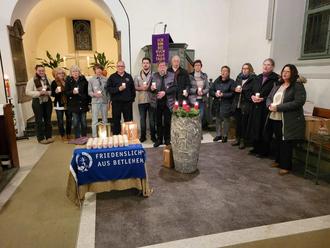 "Vielfalt leben, Zukunft gestalten" ist das Motto der Friedenslichtaktion im Jahr 2024. In einer Welt, in der viele nur das Gegeneinander betonen, soll und kann das Licht aus Bethlehem das Verbindende aller Menschen unterstreichen. Denn, so Gemeindepfarrer Ulrich Finger in einer kurzen Meditation zum Thema "Gott wurde in Jesus als Mensch geboren. Und der Glaube an Jesus Christus überwindet die Trennungen der Religionen, der Geschlechter und der Völker. Und so kann das Licht, das an die Geburt Jesu erinnert, Hoffnung geben für Frieden unter den Menschen und in der ganzen Schöpfung."