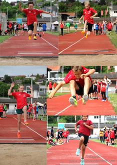 Action beim Weitsprung (oben und von links): Toni Krickau, Lars Gottschling, Marta Litzinger, Max Hundler und Adam Dierlmaier.