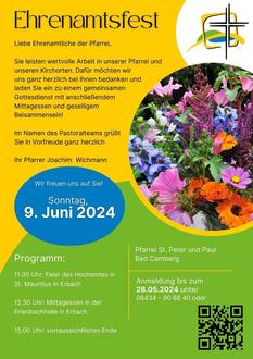 In Niederselters findet an Fronleichnam, 30.05.2024 um 9 Uhr das Hochamt statt, anschließend folgt die Prozession durch Brunnenstraße, Anlage, Alte Kirche, Alois-Born-Straße, Brunnenstraße. Nach dem Schlusssegen in der Kirche startet dann das Pfarrfest für Niederselters und Eisenbach neben der Kirche, zu dem der Ortsausschuss herzlich einlädt. Für Essen und Getränke ist gesorgt, eine Liste für Kuchenspenden liegt in der Kirche aus.