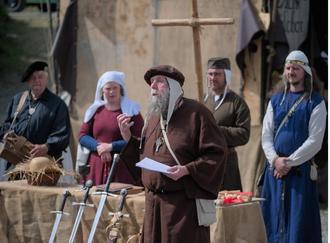 Auch in diesem Jahr war Gemeindepfarrer Ulrich Finger wieder aktiv bei den Ritterspielen in Freienfels. Bereits seit 20 Jahren schlüpft er anlässlich des überregional bekannten Mittelalterfestes in seine Gewandung und leitet am Festsonntag eine Feldandacht im mittelalterlichen Stil.