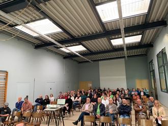 Im Anschluss der Rede beantworteten der Bürgermeister Jan Pieter Subat und der Vorsitzende der Gemeindevertretung Manuel Böcher Fragen des Publikums.