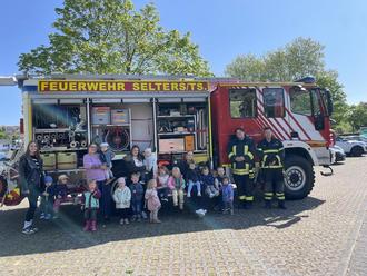 Niederselters. Am Donnerstag, den 8. Mai erhielt die Kindertagesstätte Auenland, eine Einrichtung des Lahn-Kinderkrippen e. V., Besuch von der Freiwilligen Feuerwehr Niederselters. Stellvertretende Jugendwartin Jana Lehr und Christoph Krusche sorgten mit zwei Einsatzfahrzeugen (HLF und TSF-W) für große Begeisterung bei den Kleinen. Auch die Kinder der Kinderkrippe Brunnenzwerge, eine weitere Einrichtung des Lahn-Kinderkrippen e. V. in Niederselters, kamen zu diesem Anlass vorbei und sahen sich ab 10 Uhr gemeinsam mit den kleineren Auenländern die Autos ganz genau an. Ab 11 Uhr durften dann die älteren Kita-Kinder die Fahrzeuge von innen und außen unter die Lupe nehmen. Die Kindertagesstätte Auenland dankt der Freiwilligen Feuerwehr Niederselters für den schönen Besuch, über den sich alle Kinder sehr freuten.