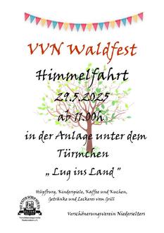 Der Verschönerungsverein Niederselters lädt zu seinem Waldfest am Donnerstag, den 29.5.25 in die Anlage unterhalb des Aussichtstürmchens,,Lug ins Land“ ein. Ab 11 Uhr gibt wieder Kaffee und Kuchen, Getränke sowie Steaks und Würste vom Grill. Auf die Kinder wartet unter anderem eine Hüpfburg.
