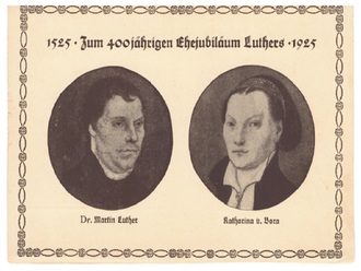 | 1525: Am 13. Juni heirateten ein ehemaliger Augustinermönch namens Martin und eine ehemalige Nonne namens Katharina in Wittenberg. Martin Luther und Katharina von Bora waren zwar nicht die ersten, aber wohl die bekanntesten Eheleute seit Beginn der Reformation. |