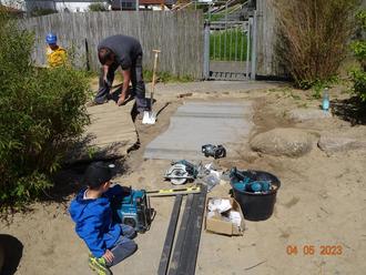 Ein besonderes Dankeschön möchten wir an dieser Stelle Herr Wach, einem Kindergartenpapa, für sein besonderes Engagement wie die tatkräftige Unterstützung vor Ort aussprechen. Nicht nur das Herr Wach alles was gestrichen werden musste im Vorfeld abkärcherte, sondern er spendete uns WPC und intsallierte die neue wetterbeständige Brücke, da die alte kaputt war.
