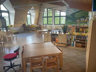 Ausweichräumlichkeiten der Kita „Unterm Regenbogen“ in der Mehrzweckhalle des TV Münster