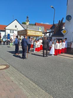 Bei strahlendem Sommerwetter wurde in Haintchen Fronleichnam gefeiert. Pfarrer Wichmann zelebrierte das Hochamt, dem sich eine Prozession zu vier Altären anschloss. Das Motto des Tages: „Frieden - vom Großen hin zum Kleinen“, war angesichts der weltpolitischen Lage aktueller denn je.