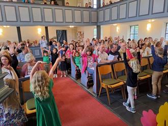 Dass im Gottesdienst viel gesungen wurde, versteht sich von selbst. Kindgerechte Bewegungslieder zur Orgel machten den Gottesdienst in der Kirche zu einer kurzweiligen Feierstunde, bevor es im Anschluss in und um die nahe gelegene Kindertagesstätte mit einem bunten Programm weiterging.