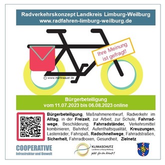 Zur Stärkung des Radverkehrs entsteht im Landkreis Limburg-Weilburg bis Ende des Jahres 2023 ein Konzept für ein durchgängiges, kreisweites Radverkehrsnetz, welches die Städte und Gemeinden auf sicheren Wegen miteinander verbinden und ein Gerüst für den kommunalen Radverkehr bilden soll.