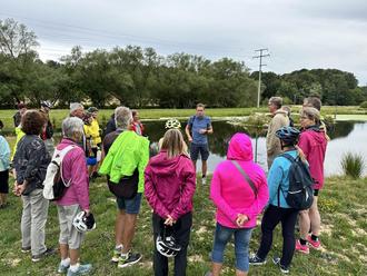 Der Tross setzte seine Radtour über den hessischen Radweg R8 mit Ziel Biotop „Unterm Nippchen“ fort, wo Benjamin Zabel und seine Mitstreiter vom NABU Niederselters in einem spannenden Vortrag die Konzeption des Biotops erläuterten und allen Mitfahrerinnen und Mitfahrern einen sehr interessanten Einblick in die bereits neu angesiedelte Flora und Fauna gaben.