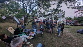 Wie bereits im vergangenen Jahr lud das Team der Katholischen Öffentlichen Bücherei St. Nikolaus Haintchen zum Sundowner in den Garten zwischen Pfarrhaus und Pfarrheim ein. Schon der vorhergehende Gottesdienst wurde vom Büchereiteam mitgestaltet und stimmte gut auf die Veranstaltung ein. Über fünfzig Personen erlebten einen stimmungsvollen Abend bei angenehmen Temperaturen mit köstlichen Cocktails oder Eistee und liebevoll vorbereiteten Snacks.