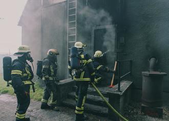 Als zweites Szenario wurden die AT-Träger zu einem Garagenbrand alarmiert. Hier war der Zugang zur Garage nur über das Wohnhaus möglich. Auch hier gab es einen zweiten Durchgang mit wechselnden Trupps und veränderter Lage - dabei wurde noch einmal kräftig eingeheizt, um der Hitze eines Realbrands nochmal realitätsnäher zu gestalten.
