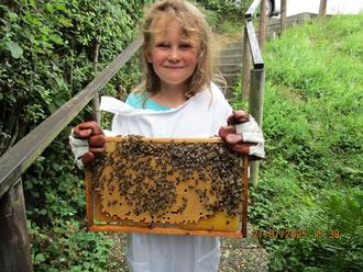 Mila aus Oberbrechen ist mutig und macht alles richtig. Der Lohn: Ein hautnahes Bienenerlebnis!