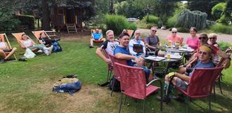 Im angeschlossenen Gartenlokal der Straußenfarm wurde eine wohlverdiente Pause eingelegt. Bei kühlen Getränken und regionalen Spezialitäten konnten sich die Radfahrer erholen, bevor es auf den Rückweg ging.