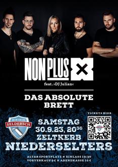 | 20:30 Uhr: | Das absolute Brett mit „NonPlus X“ und Kerbespecial mit „DJ Julian“, Eröffnung der Kerb und Einzug der Kerbeburschen und -mädels, 30l Freibier für die größte auswärtige Kerbegesellschaft; Vorverkauf 9 € (Abendkasse 10 €) pro Ticket |