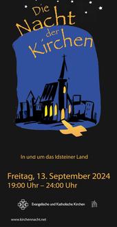 Nach sechs Jahren kehrt die „Nacht der Kirchen“ wieder in und um das Idsteiner Land zurück. Am 13. September findet von 19 Uhr bis Mitternacht die insgesamt „7. Nacht der Kirchen“ in der Region statt. 15 Kirchengemeinden bieten an zehn Orten ein breites Angebot von Erlebnis-Kirche mit Turmbesteigungen, beleuchteten Kirchen, Feuerartistik, einem illuminierten Labyrinth oder einer Feuerwehrolympiade für Kinder an.