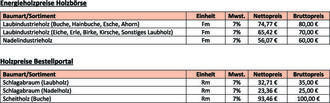 Folgende Holzpreise werden für die kommende Brennholzsaison aufgerufen: