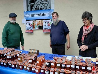 Gut aufgestellt war das Evangelische Marmeladenpfarramt beim Bauernmarkt in Weilmünster. Dabei erinnerte das Team um "Marmeladenpfarrer" Ulrich Finger auch an die unlängst verstorbene englische Königin, die sich anlässlich ihres 70-jährigen Thronjubiläums erst kürzlich in einer Filmsequenz mit dem legendären Bär "Paddington" mit viel britischem Humor als Marmeladenliebhaberin geoutet hatte.