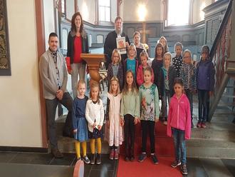 Gast im Gottesdienst in der Münsterer Kirche war die Chorgemeinschaft der Kinderchöre aus Münster und Laubuseschbach unter Leitung von Nicole Ebel. Unterstützt durch Frederik Stahl an der Gitarre stellten die Kinder stimmkräftig Teile ihres Liedrepertoires vor.
