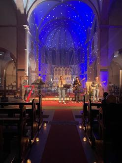 Den Höhepunkt des Abends bildete der Auftritt der Band Creator Sounds. Mit beeindruckenden Lichteffekten und energiegeladenen, christlichen Pop- und Rockliedern begeisterten sie das Publikum.