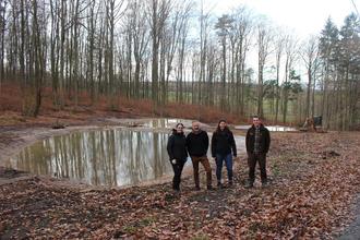 Durch die notwendige Fällung von nicht standortsangepassten Fichtenkalamitätsholz entstand in der Königsheck in Münster eine Lichtung im Wald. Die Idee zu einem einzigartigen Projekt, das sich perfekt in die örtlichen Gegebenheiten einfügt, war geboren. Der lehmige Boden hält das Wasser dort zurück und sorgt so für eine Feuchtbrache. Daher entschied sich die Gemeinde Selters vertreten durch Bürgermeister Jan Pieter Subat in Kooperation mit der Forstservice Taunus GmbH (Projektverantwortlich: Kay Ungeheuer), ein Stillgewässer anzulegen. Ziel war es, die ökologische Vielfalt zu fördern und gleichzeitig auch einen Beitrag zum Wasserrückhalt im Wald während zunehmender Trockenperioden zu leisten.