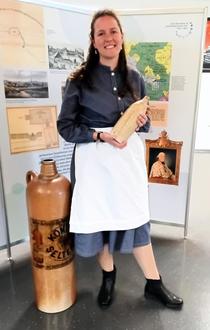 In der Tracht eines Brunnenmädchens führt jetzt Julia Westendorff die Besuchergruppen durch das Brunnenmuseum in Niederselters. Nicht zuletzt durch ihren Großvater, der seinerzeit am Brunnen arbeitete, und als Aktive im Kultur- und Geschichtsverein ist sie mit der Geschichte von Brunnen und Selterswasser bestens vertraut. Foto: Königstein