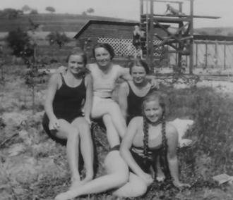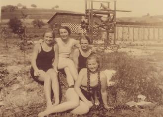 Badevergnügen vor fast 90 Jahren in der neuen Badeanstalt in Niederselters: Die Badenixen Alice Lehnert, Johanna Pohl, geborene Geis, Lydia Geis und Edith Brühl (von links). Repro: Königstein
