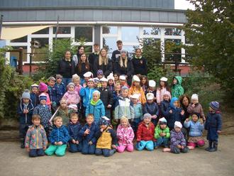 Im Rahmen des Kirchweihfestes in Niederselters, haben unsere Kindergartenkinder bei dem Besuch, am Kirmesfreitag (30.09.2022), der Kirmesgesellschaft mitgemacht. Zuerst konnten die Kinder bestaunen wie die Kirmesburschen- und mädchen einen kleinen Kirmesbaum an unserer Kita stellten. Danach wurden gemeinsam Kirmeslieder gesungen, gelacht und anschließend mit Groß und Klein auf dem Außengelände der Kita gespielt.