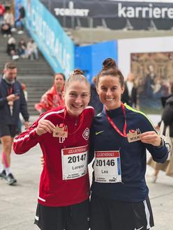 Beim Halbmarathon hinterließ Anna Elisabeth Hein von der LG Brechen mit ihrer Zeit von 1:35:15 Stunden auf Platz 48 aller Frauen und Platz 26 der Klasse WHK einen ausgezeichneten Eindruck. Lea Hartmann ( VLG ) und die erstmals für die VLG startende Lorena Preiß die beide unlängst ihre Karriere als Fußballerinnen des Hessenligisten Eintracht Lollar beendet haben, kamen zeitgleich nach 1:55:41 Stunden auf Rang 222 und 223 der Klasse WHK ins Ziel an der Kölner Domplatte. Für Lorena war es übrigens das Laufdebüt.