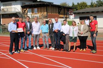 Am Ende präsentierte LSG-Vorsitzender Thomas Laux noch ein paar Zahlen, Daten und Fakten zur Tartanbahn: Im Jahr 2005 sei die Aschenbahn in eine Vollkunststoffanlage umgebaut worden. Nach 18 Jahren habe es nun einer umfangreichen Sanierung bedurft. Denn die Anlage sei intensiv genutzt worden, nicht nur und insbesondere von den ortsansässigen Vereinen, sondern auch von der Schule für den Sportunterricht, die Bundesjugendspiele und immer einmal wieder auch für „Jugend trainiert für Olympia“-Kreisentscheide. Insgesamt seien bei der jetzigen Sanierung 410 qm Tartan komplett ausgetauscht worden, 2.850 qm mit roter Oberschicht versehen und danach 4,5 km Linien neu gezogen worden.