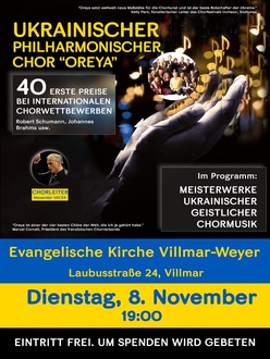 Am Dienstag, dem 8. November, wird der Chor "Oreya" aus der Ukraine in unserer Weyrer Kirche am Abend ein Konzert geben.
