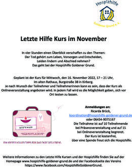 Hospizhilfe - Letzte Hilfe Kurs im November