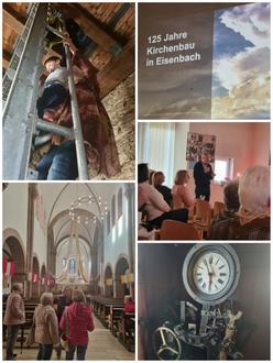 Einen schönen Sonntagnachmittag erlebten viele Besucher am 15.10.23 in Eisenbach. 125 Jahre zuvor wurde die größte und schönste Kirche des Goldenen Grunds nach nur 2-jähriger Bauzeit fertig gestellt. Eine Ausstellung zeigte viele Bilder aus vergangenen Jahren, auf Gruppenbildern von Kommunionkindern und Feierlichkeiten wurde versucht, Personen und Namen zuzuordnen. Die Gruppe "Eisenbach - einst und jetzt" unterstützte nicht nur den Vortrag von Gerd Reichwein mit viel Bildmaterial.