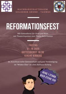 Am Freitag, den 31.10.2025, findet das zentrale Reformationsfest im Nachbarschaftsraum Goldener Grund-Taunus in Kirberg statt.
