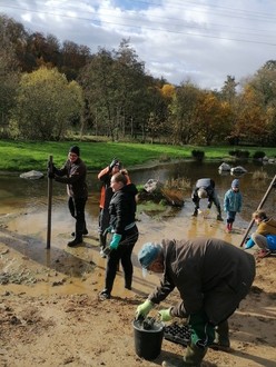 Niederselters. Am Samstag, den 11.11.2023 haben die NABU Vereinsmitglieder zusammen mit der NAJU, unseren kleinsten Naturschützern, ca. 1500 Schilf- und Wasserpflanzen um die Teiche gesetzt. Mit Gummistiefeln, Matschhosen und Handschuhen bewaffnet wurden erst unzählige Löcher gestochen und anschließend die ca. 30cm kleinen Pflanzen gesetzt. Diese sollen dann im Lauf ihres Lebens überschüssige Nährstoffe aus den Teichen ziehen und Tieren und Insekten Schutz und Nistmöglichkeiten bieten.